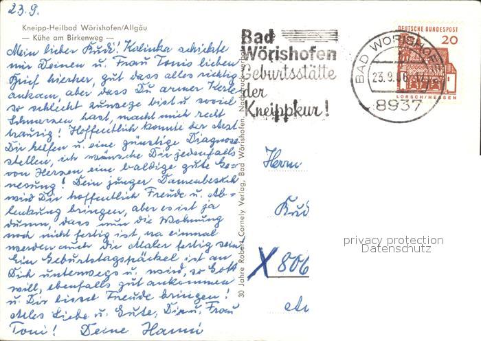 alte Postkarte Kuehe Birkenweg Bad Woerishofen Allgaeu postalisch gelaufen Erhaltung siehe scans