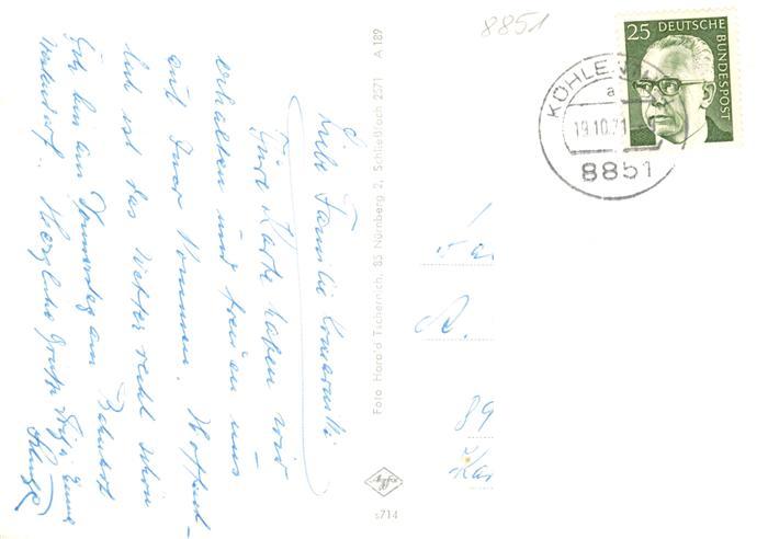 73876766 alte Postkarte Kuehlenthal Kirche Rathaus Panorama Strassenpartie postalisch gelaufen Erhaltung siehe scans [FriedD77] KatCode: 11110009772166