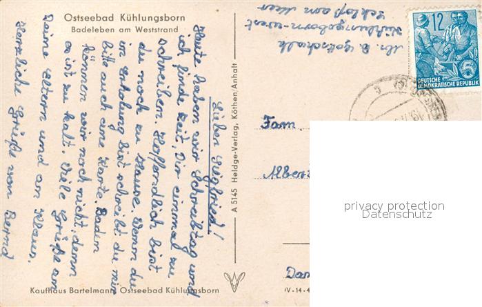 73045199 alte Postkarte Kuehlungsborn Ostseebad Badeleben am Weststrand postalisch gelaufen Erhaltung siehe scans [WerneD78] KatCode: 11110013051042
