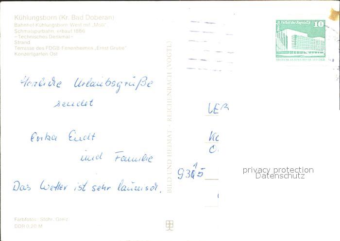 72371726 alte Postkarte Kuehlungsborn Ostseebad Bahnhof Schmalspurbahn Technisches Denkmal postalisch gelaufen Erhaltung siehe scans KatCode: 11110013051042