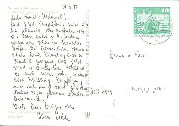 alte Postkarte Kuehlungsborn Ostseebad Erholungsheim Albert Kayser postalisch gelaufen Erhaltung siehe scans