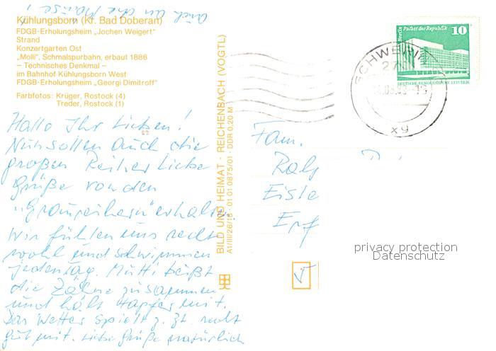 73128267 alte Postkarte Kuehlungsborn Ostseebad Erholungsheim Jochen Weigert Erholungsheim Georgi Dimitroff postalisch gelaufen Erhaltung siehe scans [PaolaD17] KatCode: 11110013051042