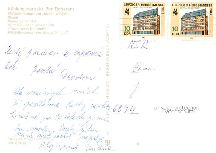 73170332 alte Postkarte Kuehlungsborn Ostseebad Erholungsheim Jochen Weigert Schmalspurbahn postalisch gelaufen Erhaltung siehe scans [NatalD47] KatCode: 11110013051042