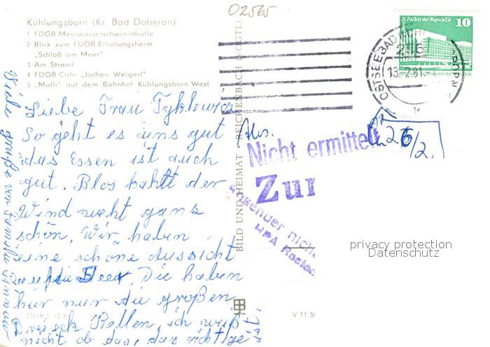 72940430 alte Postkarte Kuehlungsborn Ostseebad Erholungsheim Schloss am Meer Cafe Jochen Weigert postalisch gelaufen Erhaltung siehe scans [NatalD47] KatCode: 11110013051042