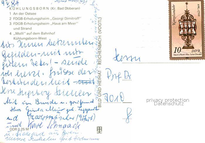 72645973 alte Postkarte Kuehlungsborn Ostseebad Erholungsheime Georgi Dimitroff und Haus am Meer Strand Molli postalisch gelaufen Erhaltung siehe scans [LiesaD40] KatCode: 11110013051042