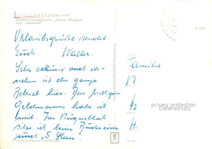 72927397 alte Postkarte Kuehlungsborn Ostseebad Erholungsheime Jochen Weigert und Schwerin postalisch gelaufen Erhaltung siehe scans [LiesaD40] KatCode: 11110013051042