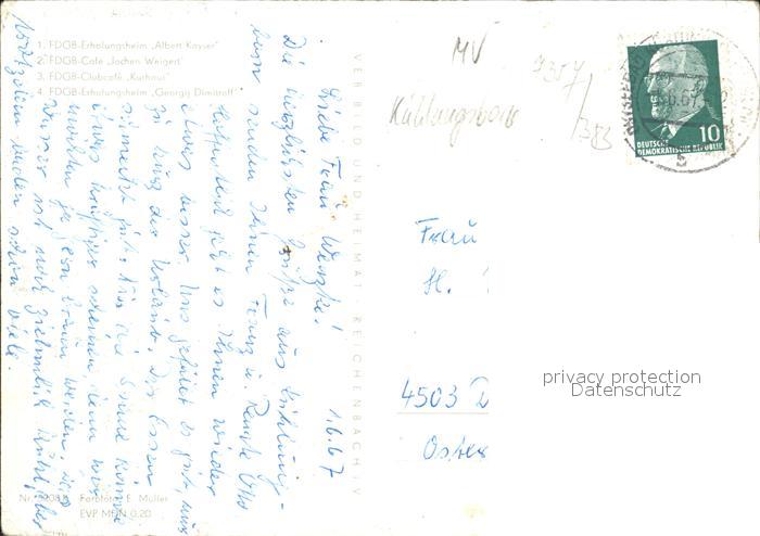 72105230 alte Postkarte Kuehlungsborn Ostseebad FDGB Erholungsheim Albert Kayser postalisch gelaufen Erhaltung siehe scans KatCode: 11110013051042