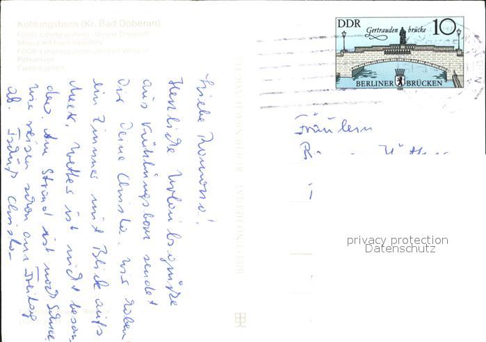 72418424 alte Postkarte Kuehlungsborn Ostseebad FDGB Erholungsheim Georgi Dimitroff Strand Fischerboote FDGB Erholungsheim Jochen Weigert Parkanlage Campingplatz postalisch gelaufen Erhaltung siehe scans KatCode: 11110013051042