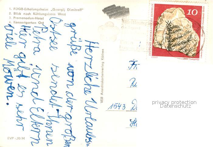 73099874 alte Postkarte Kuehlungsborn Ostseebad FDGB Erholungsheim Georgij Dimitroff Promenaden Hotel Konzertgarten postalisch gelaufen Erhaltung siehe scans [KathaD81] KatCode: 11110013051042