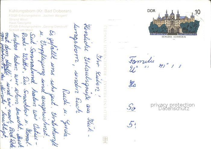 72177892 alte Postkarte Kuehlungsborn Ostseebad FDGB- Erholungsheim Jochen Weigert Strand postalisch gelaufen Erhaltung siehe scans KatCode: 11110013051042