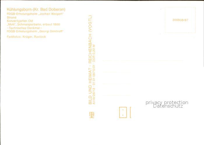 72545337 Kuehlungsborn Ostseebad FDGB Erholungsheim Jochen Weigert Strand Konzertgarten Molli postalisch nicht gelaufen Erhaltung siehe scans [KathaD79 kv011box] KatCode: 11110013051042