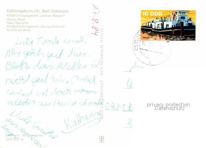 72698414 alte Postkarte Kuehlungsborn Ostseebad FDGB Erholungsheim Jochen Weigert Strand West Haus Georgine FDGB Erholungsheim Georgi Dimitroff Schloss am Meer postalisch gelaufen Erhaltung siehe scans [WerneD78] KatCode: 11110013051042