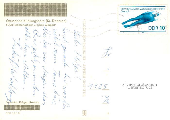 73752645 alte Postkarte Kuehlungsborn Ostseebad FDGB-Erholungsheim Jochen Weigert postalisch gelaufen Erhaltung siehe scans [LiesaD40] KatCode: 11110013051042