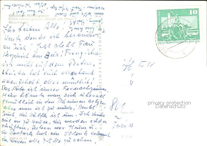 72402337 alte Postkarte Kuehlungsborn Ostseebad FDGB Erholungsheim Schloss am Meer Bauernstube postalisch gelaufen Erhaltung siehe scans KatCode: 11110013051042