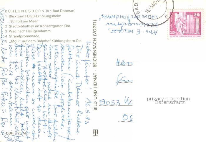72703199 alte Postkarte Kuehlungsborn Ostseebad FDGB-Erholungsheim Schloss am Meer Stadtbibliothek postalisch gelaufen Erhaltung siehe scans [AndreD76] KatCode: 11110013051042