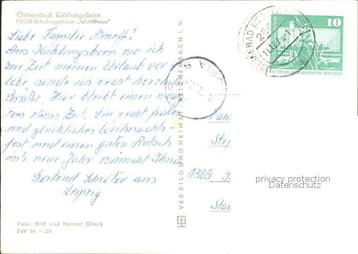 72010226 alte Postkarte Kuehlungsborn Ostseebad FDGB Erholungsheim Waldhaus postalisch gelaufen Erhaltung siehe scans KatCode: 11110013051042