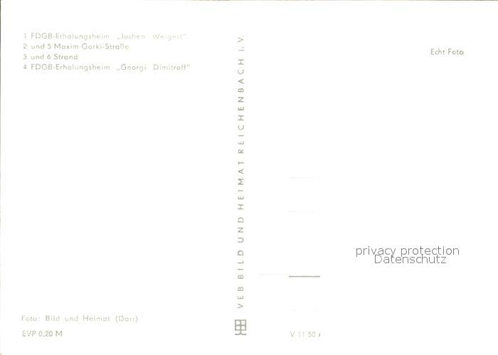 72357834 Kuehlungsborn Ostseebad FDGB Erholungsheim Weigert Maxim Gorki Strasse Strand FDGB Erholungsheim Dimitroff postalisch nicht gelaufen Erhaltung siehe scans KatCode: 11110013051042
