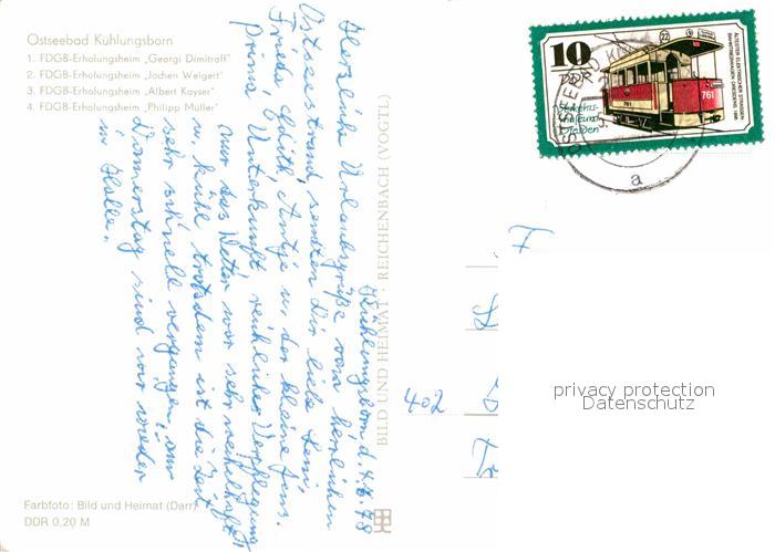 72845088 alte Postkarte Kuehlungsborn Ostseebad FDGB Erholungsheime postalisch gelaufen Erhaltung siehe scans [FriedD77] KatCode: 11110013051042