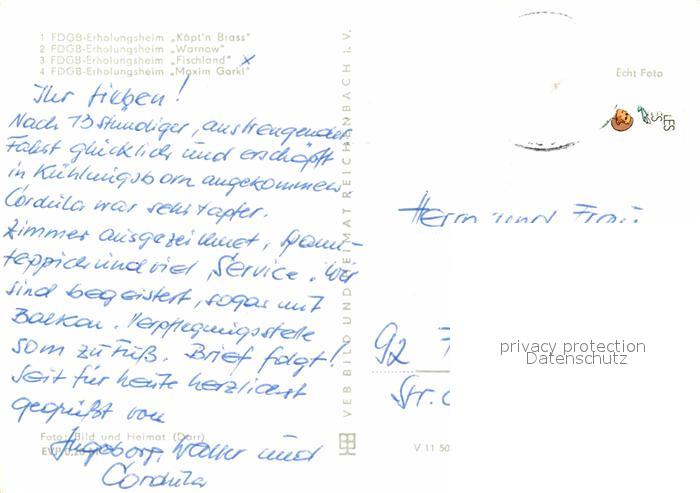 72730448 alte Postkarte Kuehlungsborn Ostseebad FDGB Erholungsheime postalisch gelaufen Erhaltung siehe scans [FriedD77] KatCode: 11110013051042