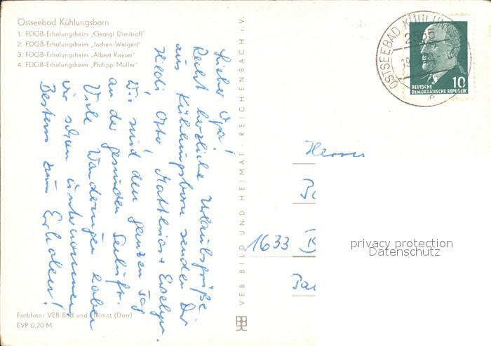 72049561 alte Postkarte Kuehlungsborn Ostseebad FDGB Erholungsheime Georgii Dimitroff Jochen Weigert Albert Kayser Philipp Mueller postalisch gelaufen Erhaltung siehe scans KatCode: 11110013051042