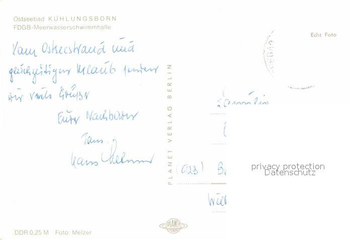 72812744 alte Postkarte Kuehlungsborn Ostseebad FDGB Meerwasserschwimmhalle postalisch gelaufen Erhaltung siehe scans [FriedD77] KatCode: 11110013051042