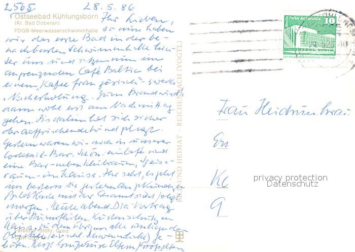 73162559 alte Postkarte Kuehlungsborn Ostseebad FDGB Meerwasserschwimmhalle postalisch gelaufen Erhaltung siehe scans [FriedD77] KatCode: 11110013051042