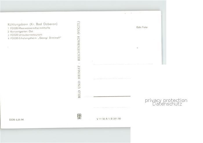 72412778 Kuehlungsborn Ostseebad FDGB Meerwasserschwimmhalle Konzertgarten Urlauberrestaurant Erholungsheim Georgi Dimitroff postalisch nicht gelaufen Erhaltung siehe scans KatCode: 11110013051042