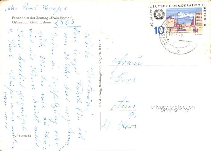 72017946 alte Postkarte Kuehlungsborn Ostseebad Ferienheim der Zentrag Erwin Fischer postalisch gelaufen Erhaltung siehe scans KatCode: 11110013051042