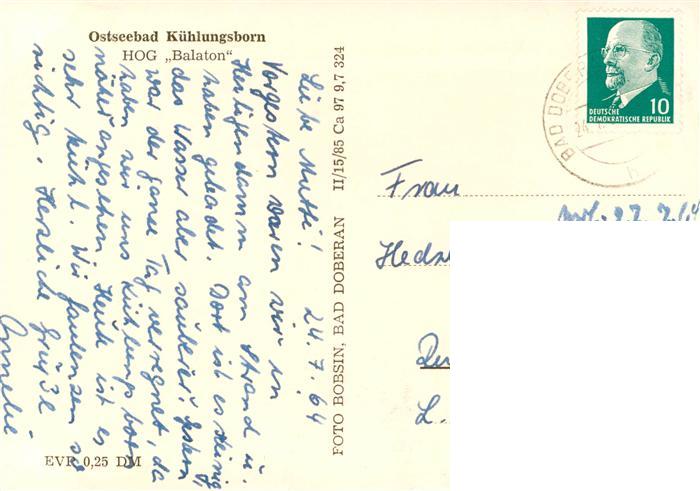 73896195 alte Postkarte Kuehlungsborn Ostseebad HOG Balaton Gastraum postalisch gelaufen Erhaltung siehe scans [WerneD78] KatCode: 11110013051042
