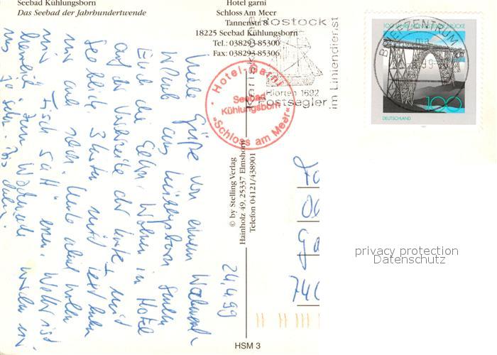 73091645 alte Postkarte Kuehlungsborn Ostseebad Hotel Schloss am Meer postalisch gelaufen Erhaltung siehe scans [KathaD81] KatCode: 11110013051042