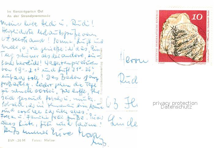72633786 alte Postkarte Kuehlungsborn Ostseebad Konzertgarten Milchbar Strand Promenade postalisch gelaufen Erhaltung siehe scans [FriedD77] KatCode: 11110013051042