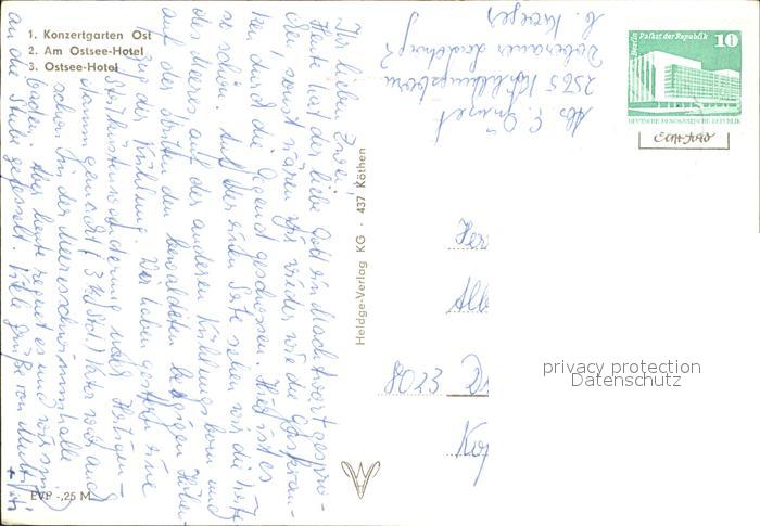 72357333 alte Postkarte Kuehlungsborn Ostseebad Konzertgarten Ostsee-Hotel postalisch gelaufen Erhaltung siehe scans KatCode: 11110013051042