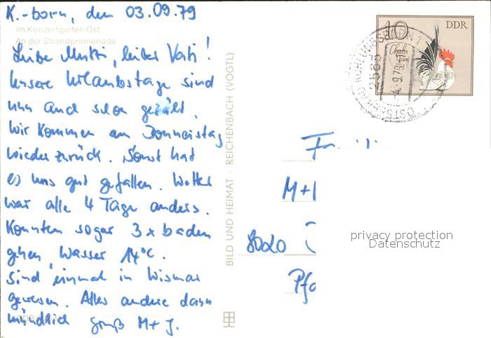 72357302 alte Postkarte Kuehlungsborn Ostseebad Konzertgarten Strandpromenade postalisch gelaufen Erhaltung siehe scans KatCode: 11110013051042