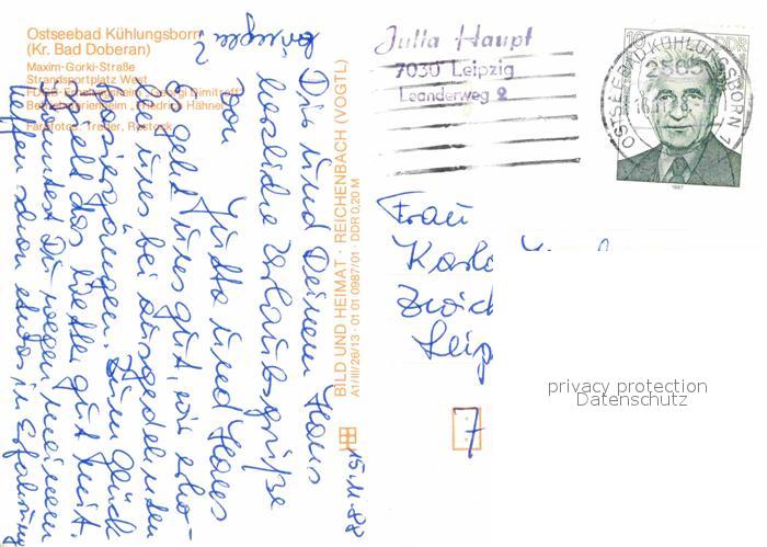 72697516 alte Postkarte Kuehlungsborn Ostseebad Maxim Gorki Str Standsportplatz West FDGB Erholungsheim Georgi Dimitroff postalisch gelaufen Erhaltung siehe scans [WerneD78] KatCode: 11110013051042