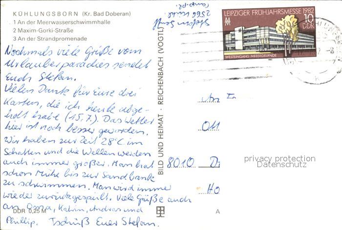 72402330 alte Postkarte Kuehlungsborn Ostseebad Meehrwasserschwimmhalle Maxim Gorki Str Strandpromenade postalisch gelaufen Erhaltung siehe scans KatCode: 11110013051042