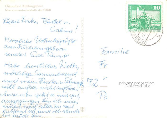 73152171 alte Postkarte Kuehlungsborn Ostseebad Meeresschwimmhalle des FDBG postalisch gelaufen Erhaltung siehe scans [KathaD81] KatCode: 11110013051042