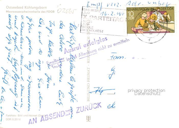 72990393 alte Postkarte Kuehlungsborn Ostseebad Meerwasserschwimmbad der FDGB postalisch gelaufen Erhaltung siehe scans [LiesaD40] KatCode: 11110013051042