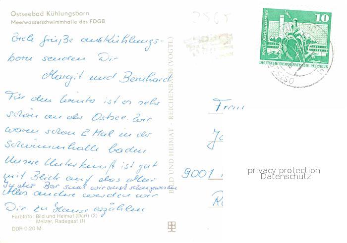 72774615 alte Postkarte Kuehlungsborn Ostseebad Meerwasserschwimmbad des FDGB postalisch gelaufen Erhaltung siehe scans [NatalD47] KatCode: 11110013051042