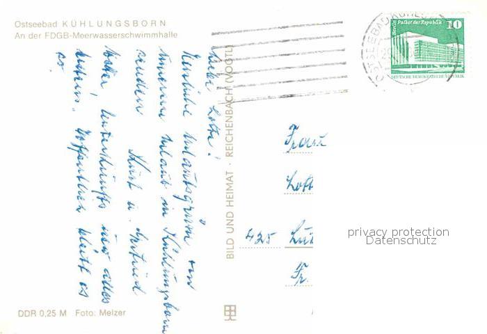 72826598 alte Postkarte Kuehlungsborn Ostseebad Meerwasserschwimmhalle postalisch gelaufen Erhaltung siehe scans [PaolaD17] KatCode: 11110013051042