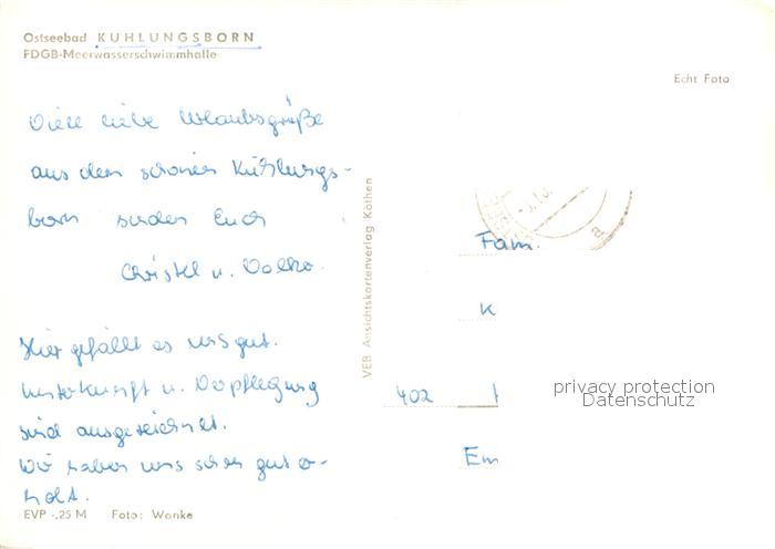 72920289 alte Postkarte Kuehlungsborn Ostseebad Meerwasserschwimmhalle postalisch gelaufen Erhaltung siehe scans [LiesaD40] KatCode: 11110013051042