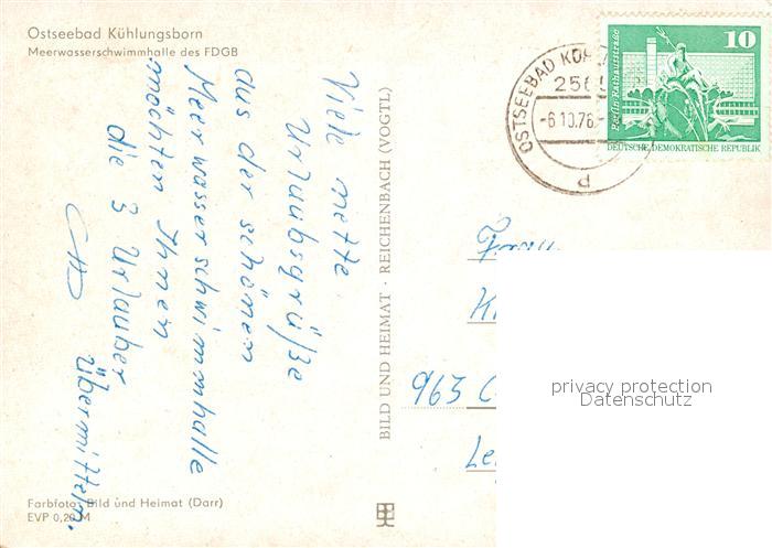 73152630 alte Postkarte Kuehlungsborn Ostseebad Meerwasserschwimmhalle des FDGB postalisch gelaufen Erhaltung siehe scans [FriedD77] KatCode: 11110013051042