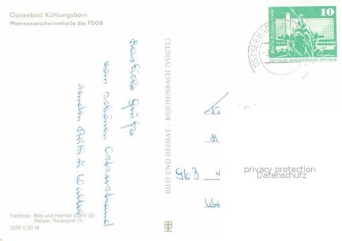 72800621 alte Postkarte Kuehlungsborn Ostseebad Meerwasserschwimmhalle des FDGB postalisch gelaufen Erhaltung siehe scans [FriedD77] KatCode: 11110013051042