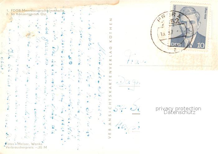 73159067 alte Postkarte Kuehlungsborn Ostseebad Meerwasserschwimmhalle Konzertgarten postalisch gelaufen Erhaltung siehe scans [PaolaD17] KatCode: 11110013051042