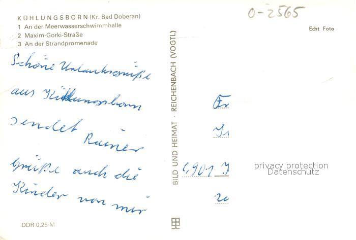 73044218 alte Postkarte Kuehlungsborn Ostseebad Meerwasserschwimmhalle Maxim Gorki Strasse Strandpromenade postalisch gelaufen Erhaltung siehe scans [WerneD78] KatCode: 11110013051042