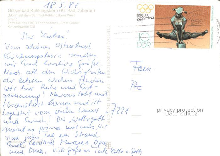 72002986 alte Postkarte Kuehlungsborn Ostseebad Molli Bahnhof Strand Terrasse FDGB Ferienheimes Ernst Grube Konzertgartern Ost postalisch gelaufen Erhaltung siehe scans KatCode: 11110013051042