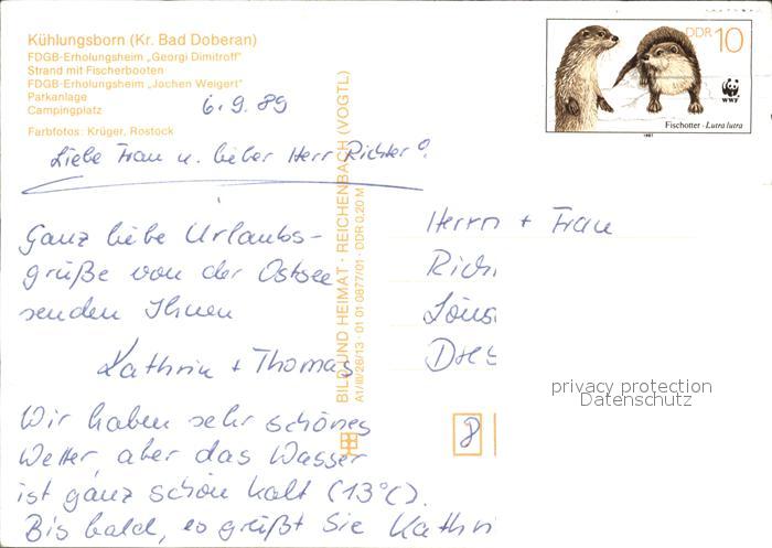 72418970 alte Postkarte Kuehlungsborn Ostseebad Ostseebad FDGB Erholungsheim Jochen Weigert Campingplatz postalisch gelaufen Erhaltung siehe scans KatCode: 11110013051042
