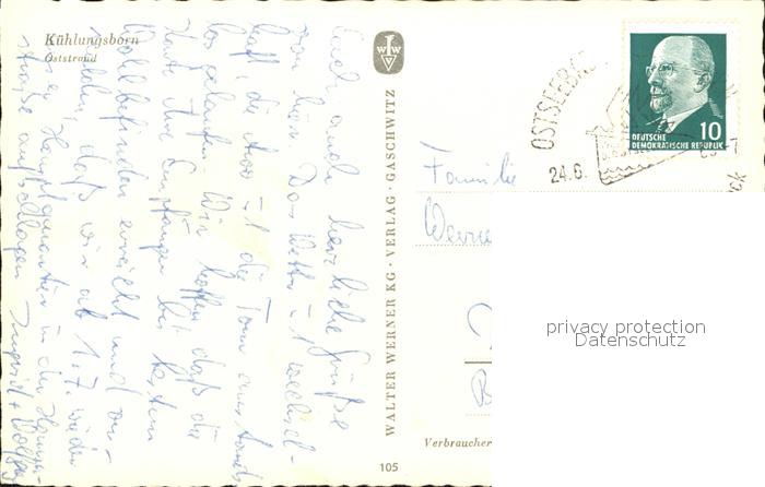 72401639 alte Postkarte Kuehlungsborn Ostseebad Oststrand postalisch gelaufen Erhaltung siehe scans KatCode: 11110013051042