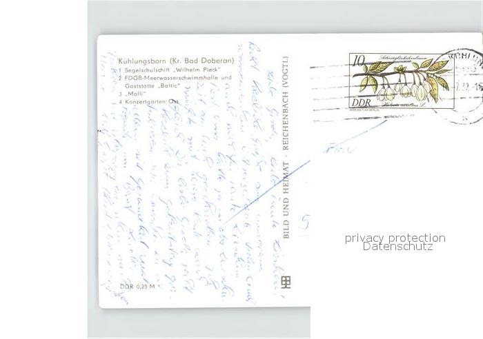71900244 alte Postkarte Kuehlungsborn Ostseebad Segelschulschiff Wilhelm Pieck Meerwasserschwimmbad Restaurant Baltic Molli postalisch gelaufen Erhaltung siehe scans KatCode: 11110013051042