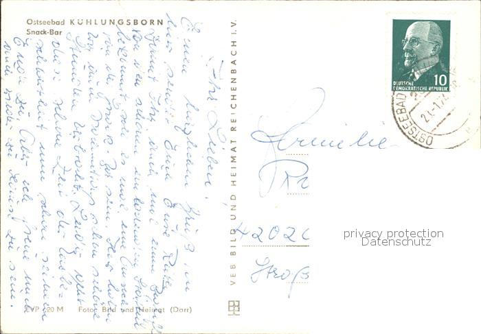 72016358 alte Postkarte Kuehlungsborn Ostseebad Snack-Bar postalisch gelaufen KatCode: 11110013051042