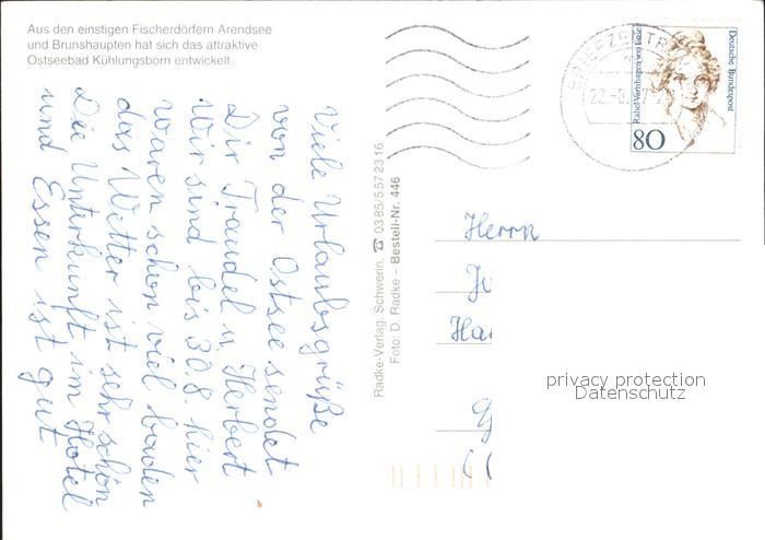 72336051 alte Postkarte Kuehlungsborn Ostseebad Strand Promenade Baederbahn Molli Dampflokomotive Skulptur Rohrdachhaus postalisch gelaufen Erhaltung siehe scans KatCode: 11110013051042